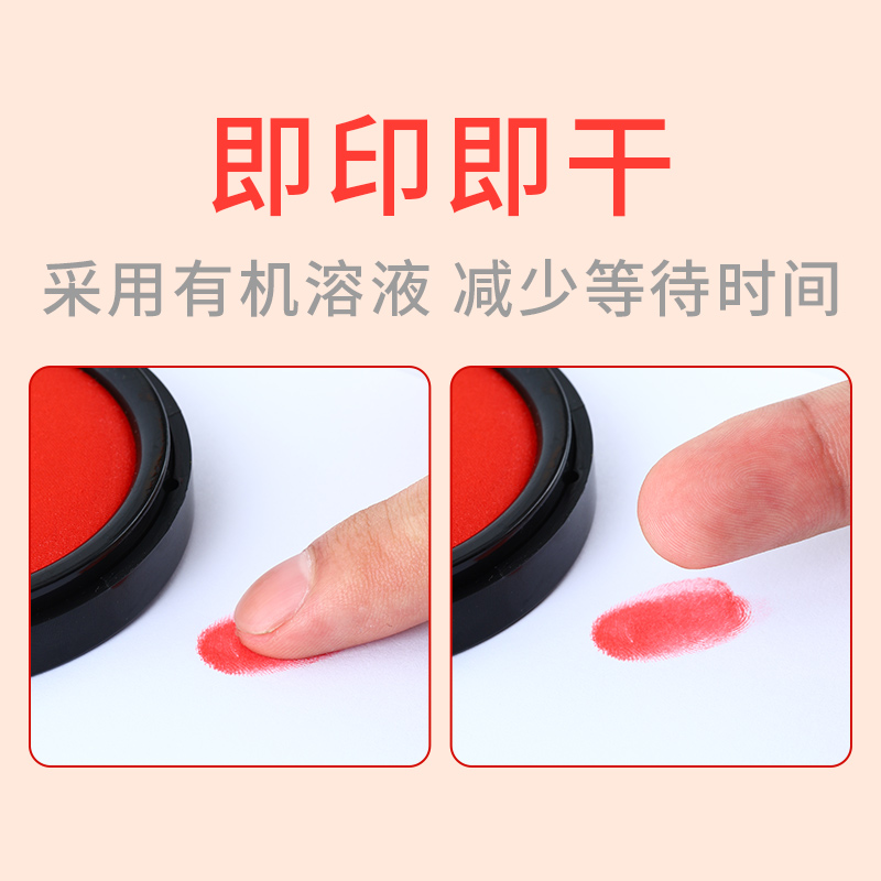 秒干速干适用红色圆形印油财会用品印泥盒 快干秒干印泥办公用品印台财务便携式 得力红色印台 油性