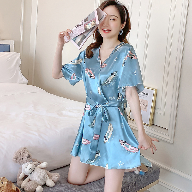 可爱大码 爆款 睡裙女夏季 冰丝薄款 胖妹古风丝绸睡衣两件套 自带短裤