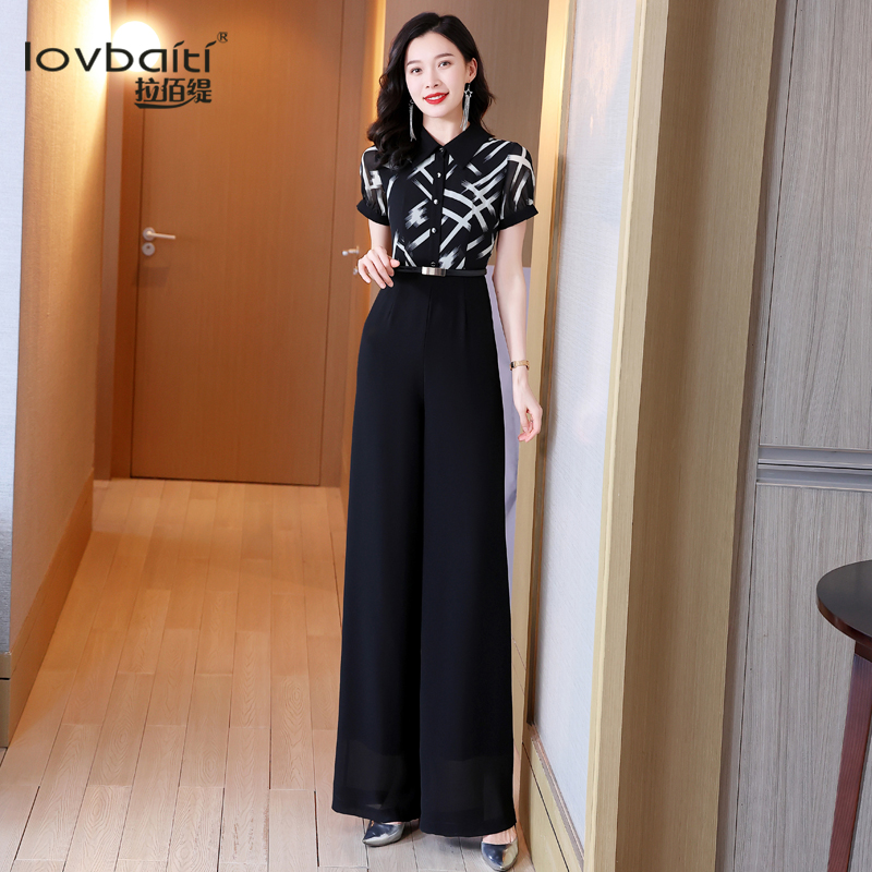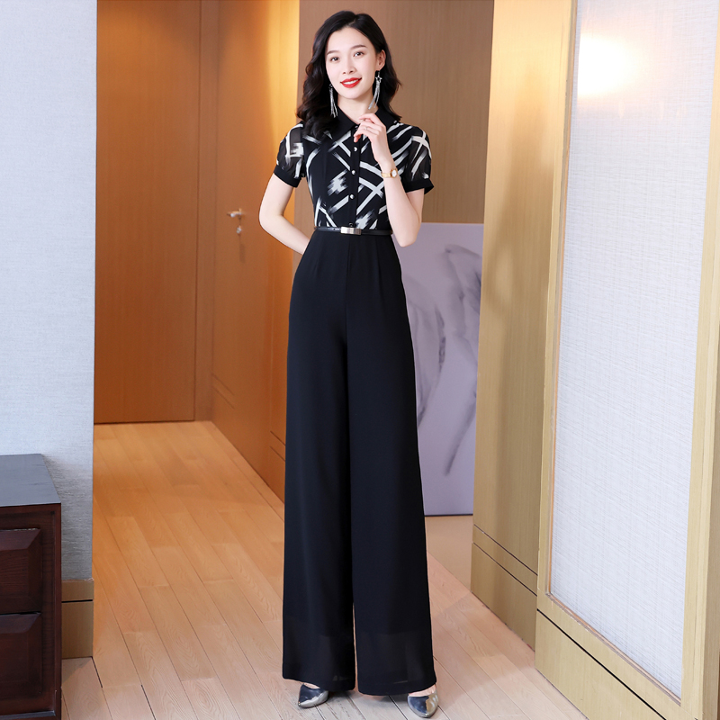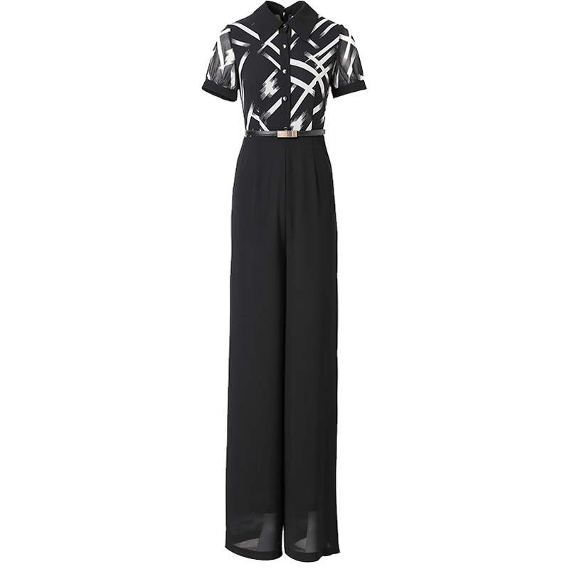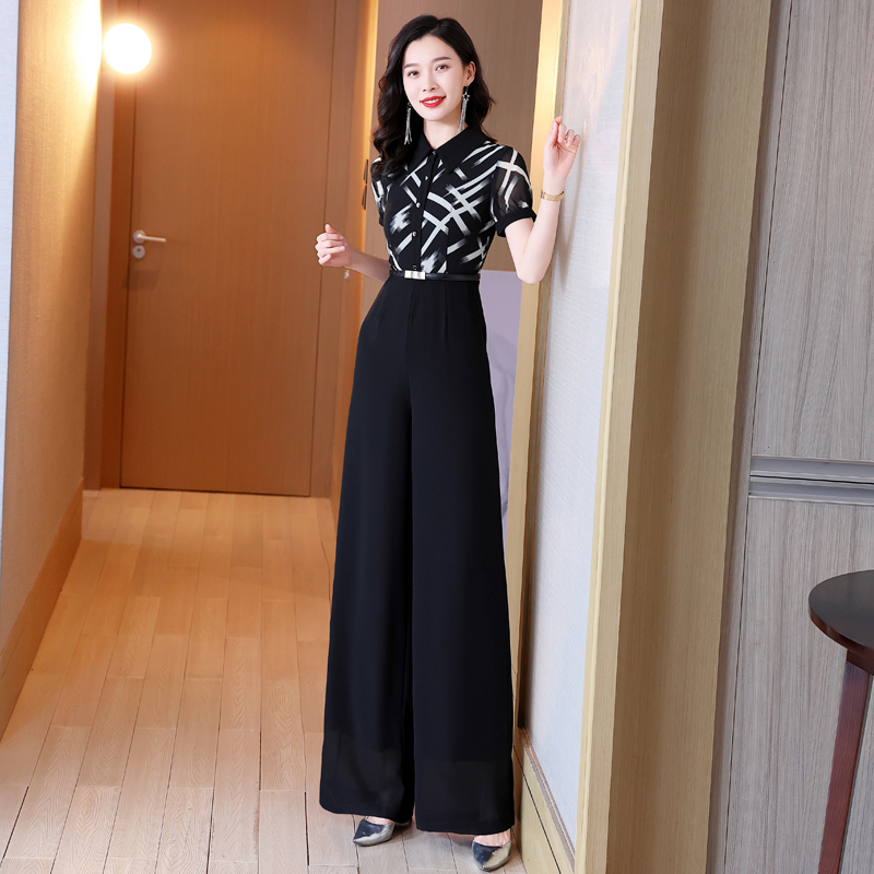 女装 连身裤 设计感小众2024新款 通勤长款 456 夏季 黑色衬衣领连体裤