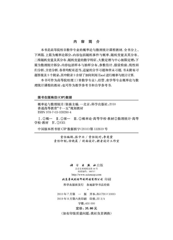 社 书籍 张薇 随机变量及其分布 二维随机变量及其分布 内容包括随机事件与概率 概率论与数理统计 主编 正版 科学出版 现货正版