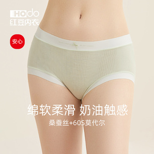 红豆女士60支莫代尔内裤 纯棉抗菌裆无痕含真丝女生透气中腰三角裤