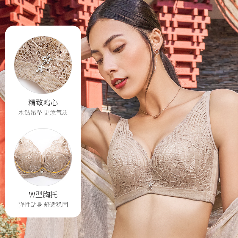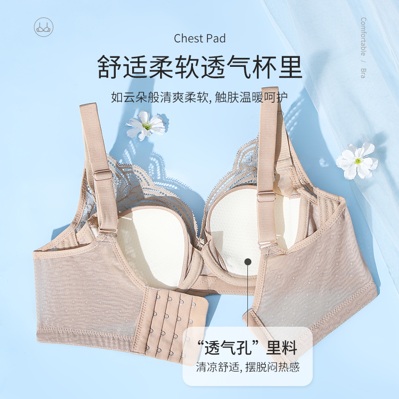 爱戴法式 胸罩 内衣大胸显小收副乳防下垂防走光文胸软钢圈女士薄款