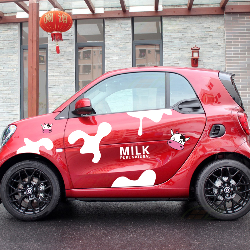 SMART小蚂蚁车身装 饰贴纸知豆D2S卡通奶牛车贴思皓E10X电动车拉花