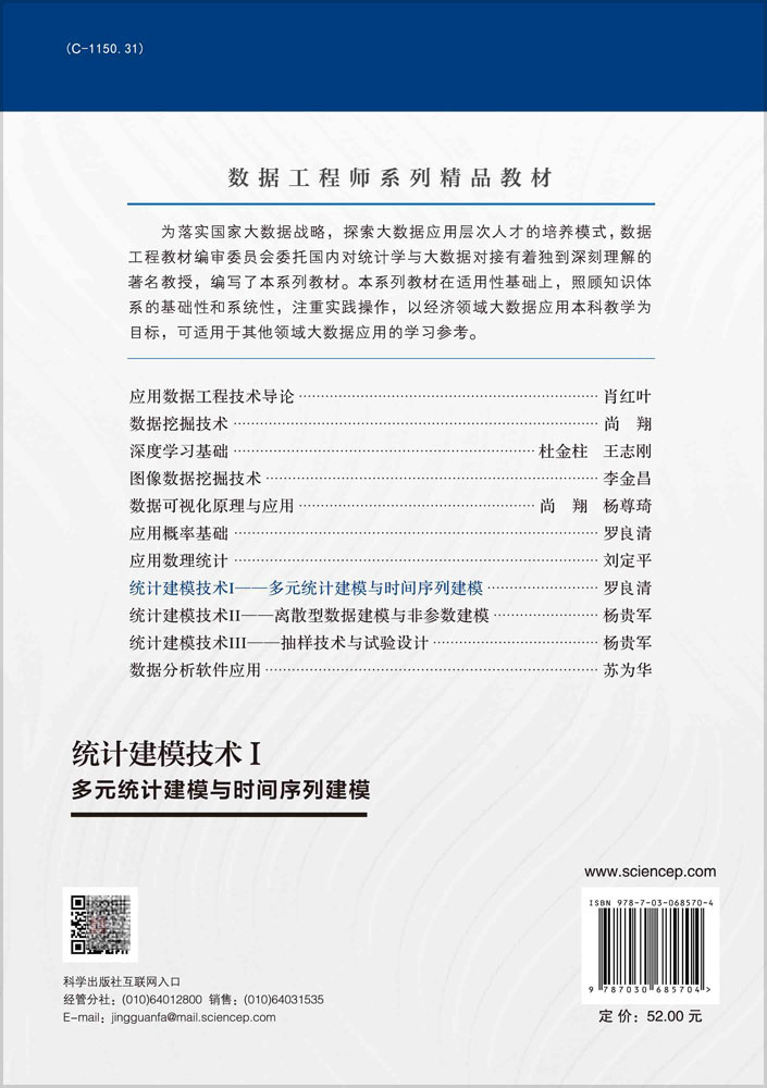 多元 统计建模与时间序列建模 社 全新现货平装 9787030685704 科学出版 统计建模技术Ⅰ 罗良清 正版 数据工程师系列精品教材