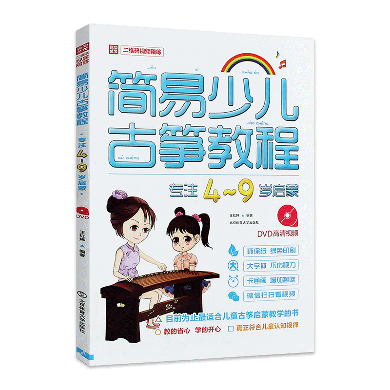 专注4 9岁古筝入门启蒙图书 北京体育大学出版 书籍 社 带DVD高清示范讲解 简易少儿古筝教程 古筝技法 正版 儿童古筝入门图书