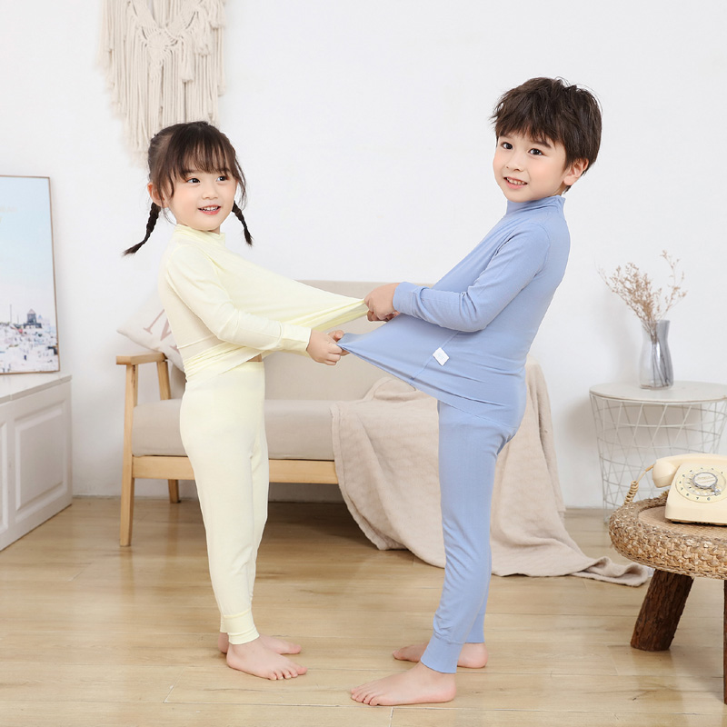 棉毛衫 男女童春秋薄款 宝宝打底内衣 套装 儿童莫代尔半高领秋衣秋裤