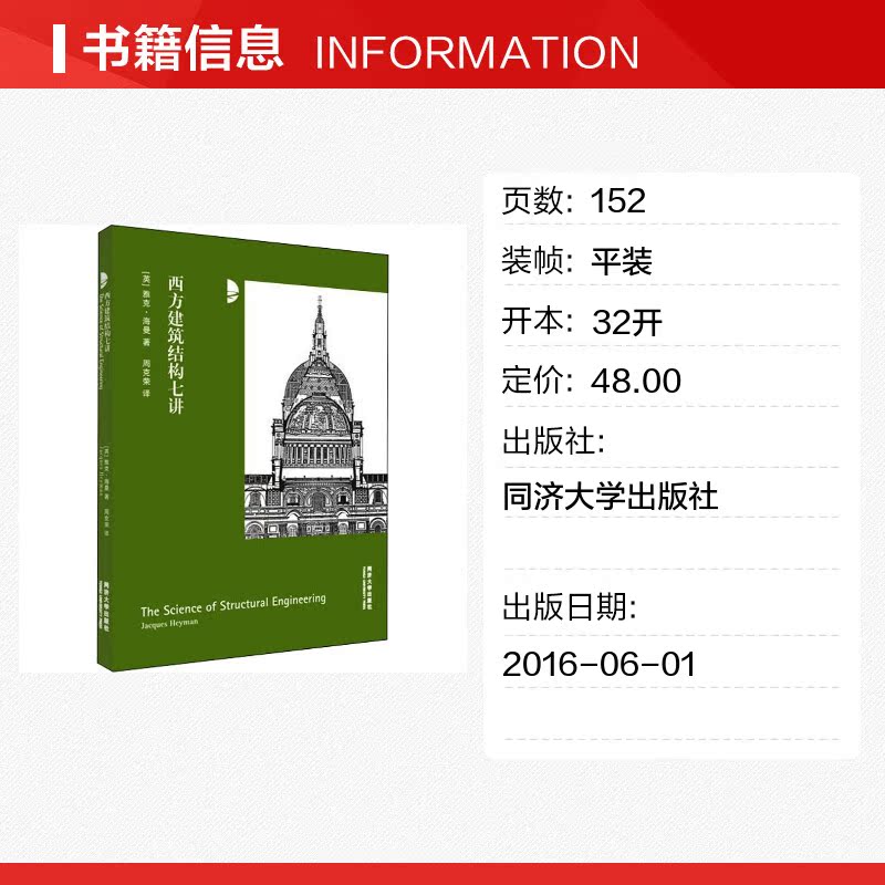 著 社 同济大学出版 新 英 雅克·海曼 专业科技 译 周克荣 图书籍 西方建筑结构七讲 建筑 新华书店正版 水利