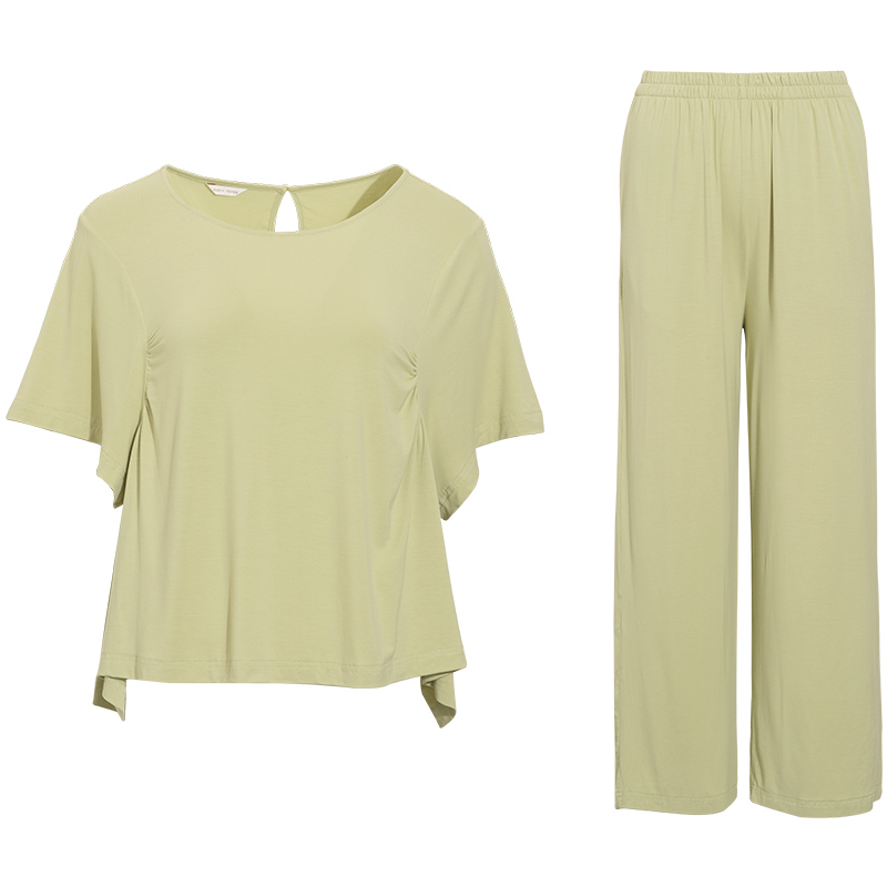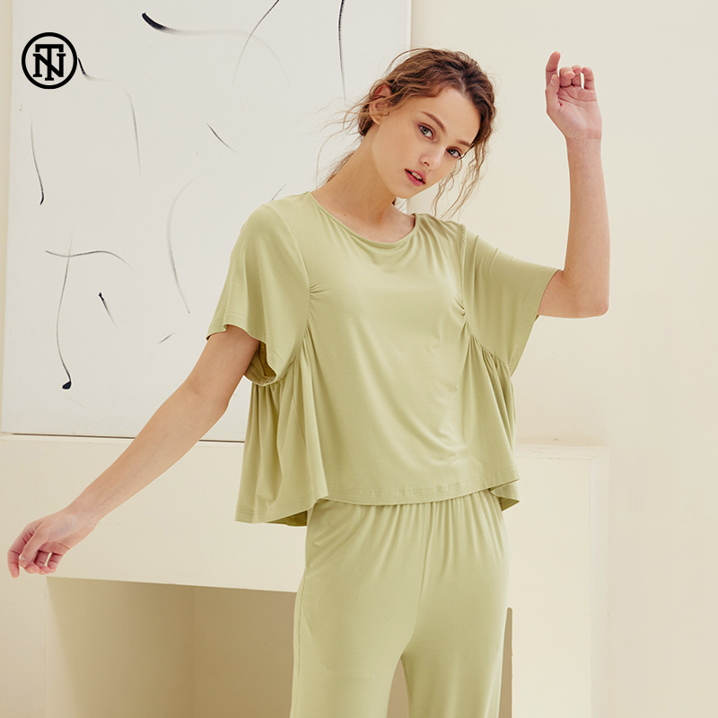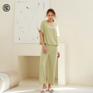 家居服两件套装 睡衣女纯色套头长裤 短袖 NoirTease奈黎诗春夏薄款