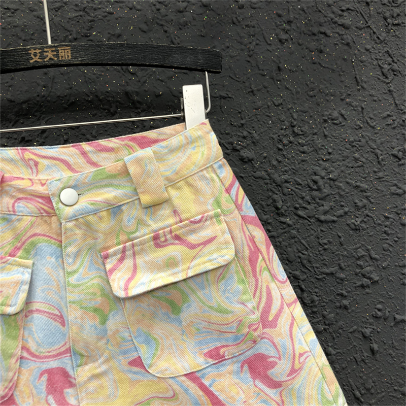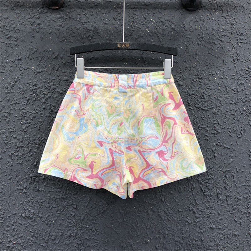 热裤 洋气彩色高腰工装 宽松显瘦a字阔腿裤 女2025春夏新款 牛仔短裤