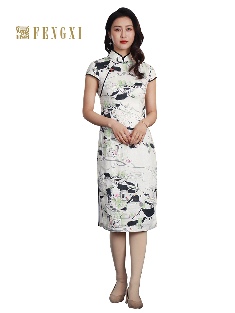长裙盘扣裙子女夏 人丝亚麻连衣裙改良旗袍新中式 JKJS 月芙蕖