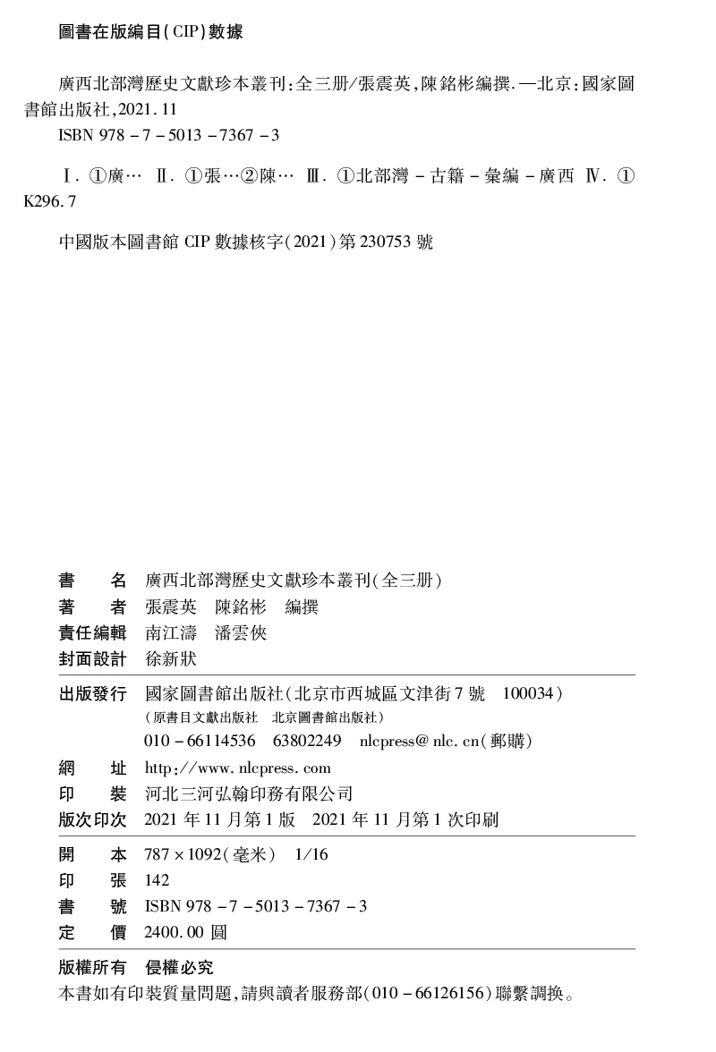 现货 国家图书馆出版 广西北部湾历史文献珍本丛刊 张震英 社9787501373673 全三册 正版