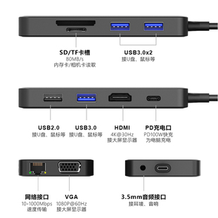 华硕a豆拓展坞扩展Type HDMI多接口网线转换器转接头适用于苹果电脑MacBookPro华为iPad手机 c笔记本USB分线3