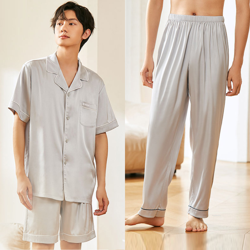 初中学生青少年男士 棉绸睡衣男童夏季 绵绸套装 大童长袖 家居服 男款
