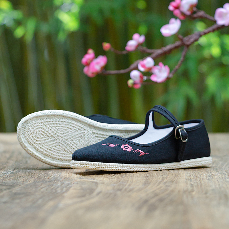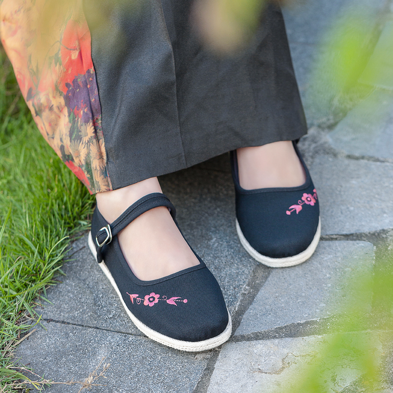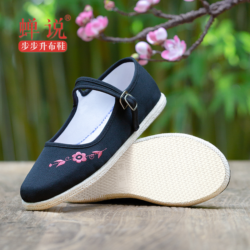 老北京妈妈鞋 蝉说千层底手工布鞋 女一字带春夏秋国风刺绣花大小码