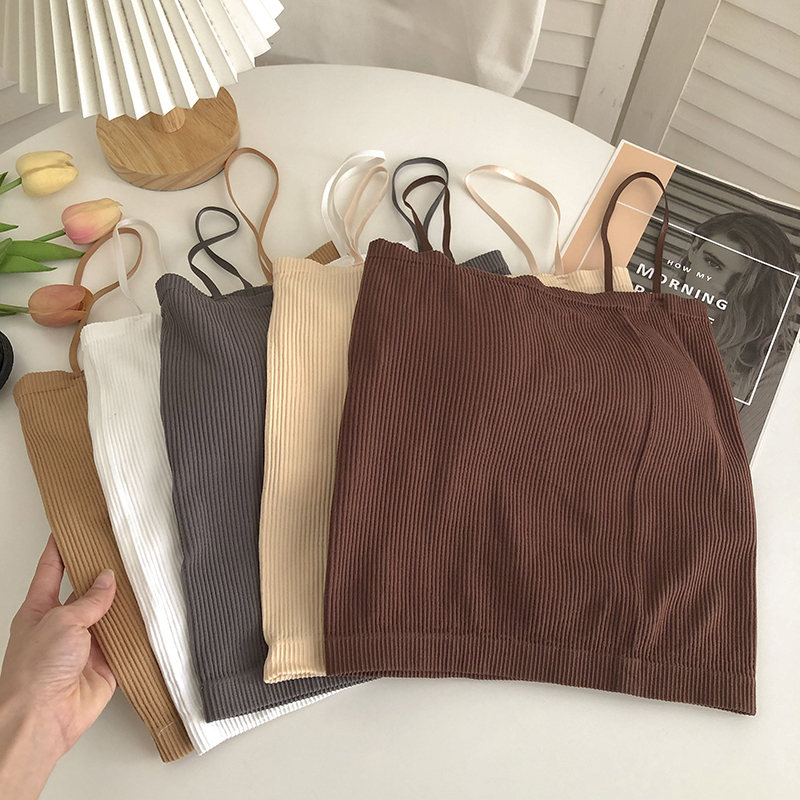 上衣 带胸垫遮副乳外穿显瘦打底无袖 棉吊带背心春夏季 内搭薄款