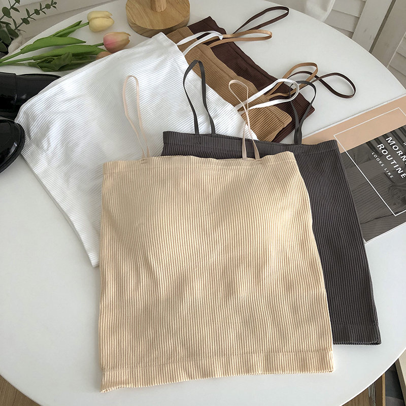 内搭遮副乳打底白色短款 西装 吊带小背心女外穿 螺纹防走光无袖 夏季