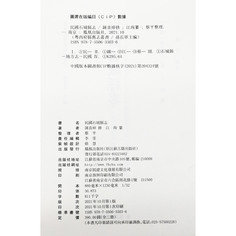 蔡平整理 书籍9787550635036 全2册 正版 社 江苏凤凰出版 江珣纂 修 钟喜焯 粤西府县旧志丛书 民国石城县志
