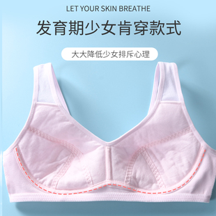 安菲雅少女内衣女初中高中学生发育期文胸薄纯棉无海绵背心式 胸罩