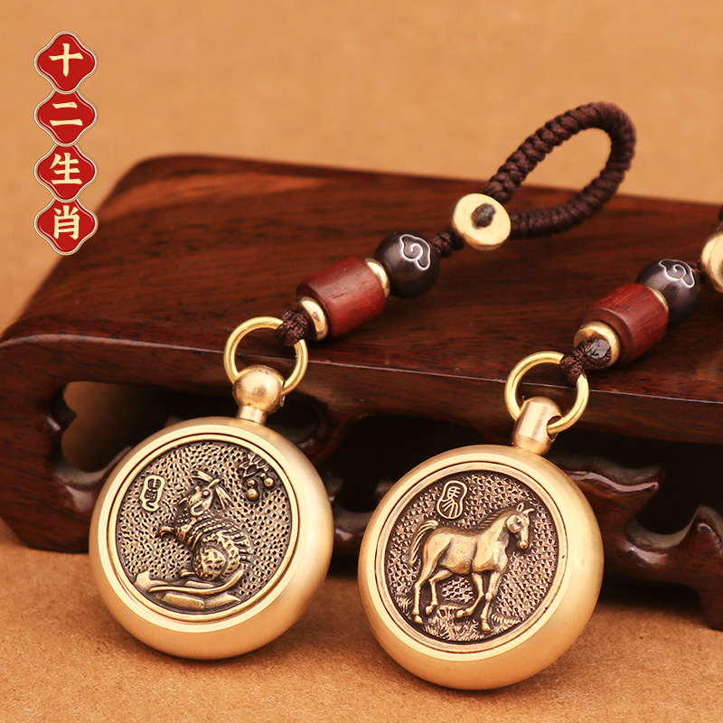 纯铜黄铜十二生肖汽车钥匙扣挂件转钱转转运虎年招财钥匙挂饰男