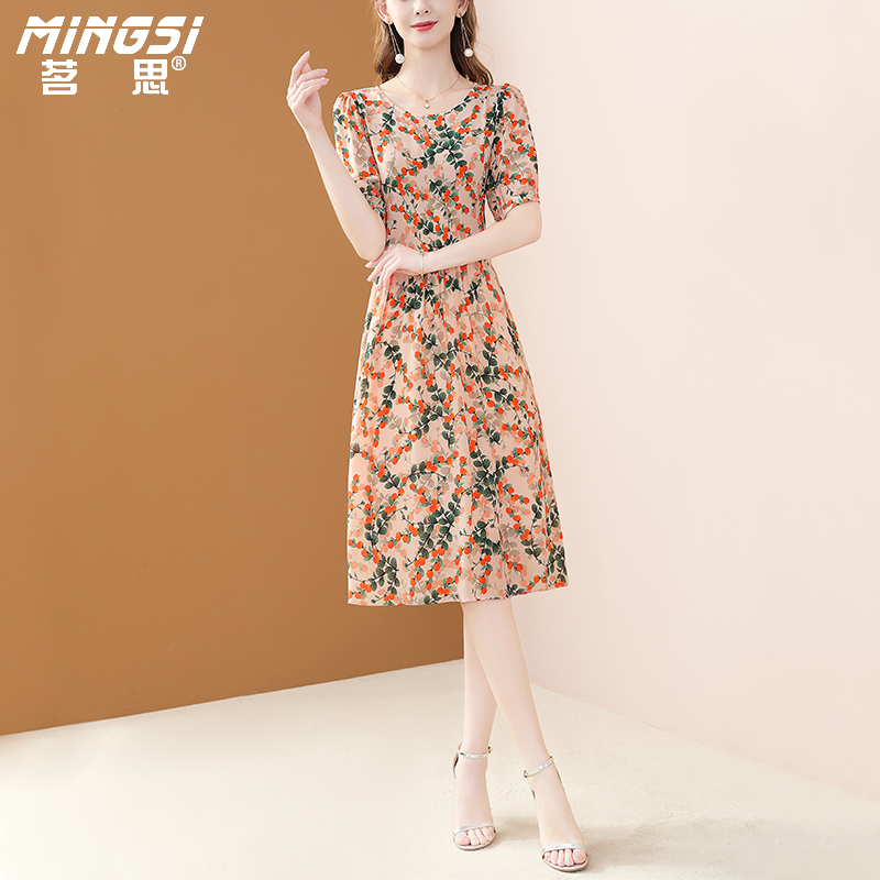 V领荷叶袖 套装 中长裙千金风32537D019 Moda连衣裙2025秋季 Vero