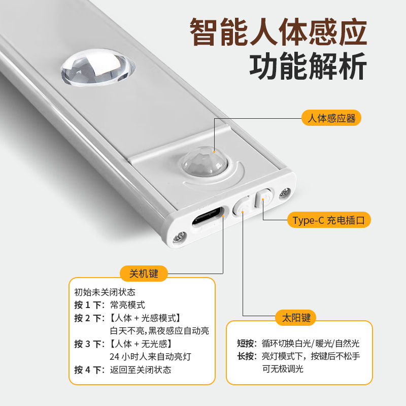 led智能人体感应灯无线磁吸小夜灯充电超长续航厨房衣柜卧室壁灯