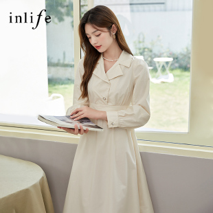 显瘦复古收腰气质衬衫 连衣裙女春秋2025新款 裙 长袖 伊纳芙中长款