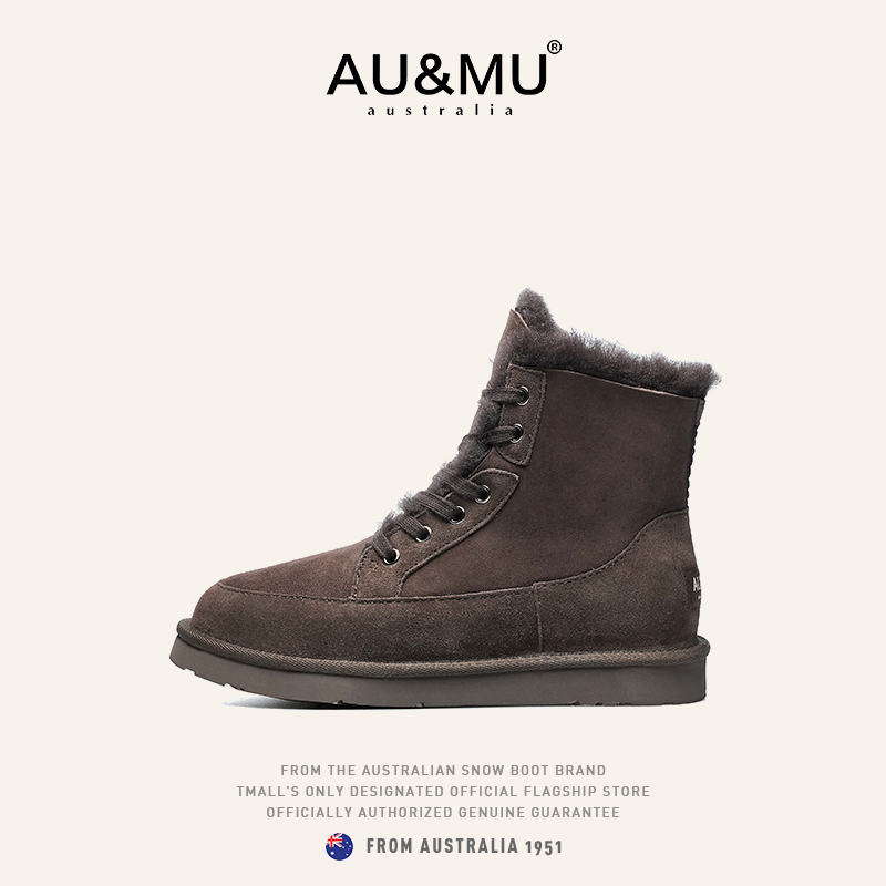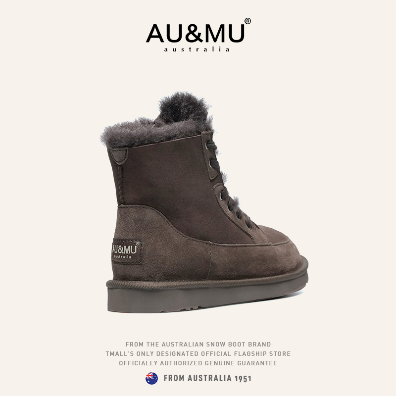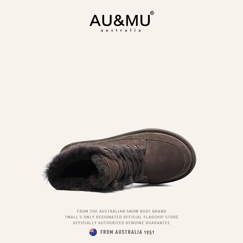 绒加厚毛毛黑色男女鞋 AUMU短筒雪地靴 冬季 2025新款 真羊皮毛一体