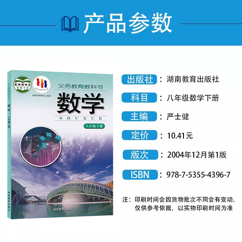 初中数学 8八年级下册数学课本教科书 课程标准实验教科书 2025使用 数学8八下课本 初二下册数学 湘教版 社 正版 湖南教育出版