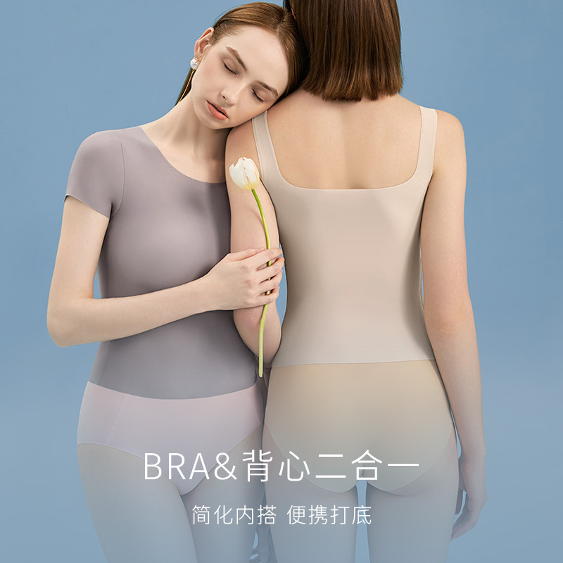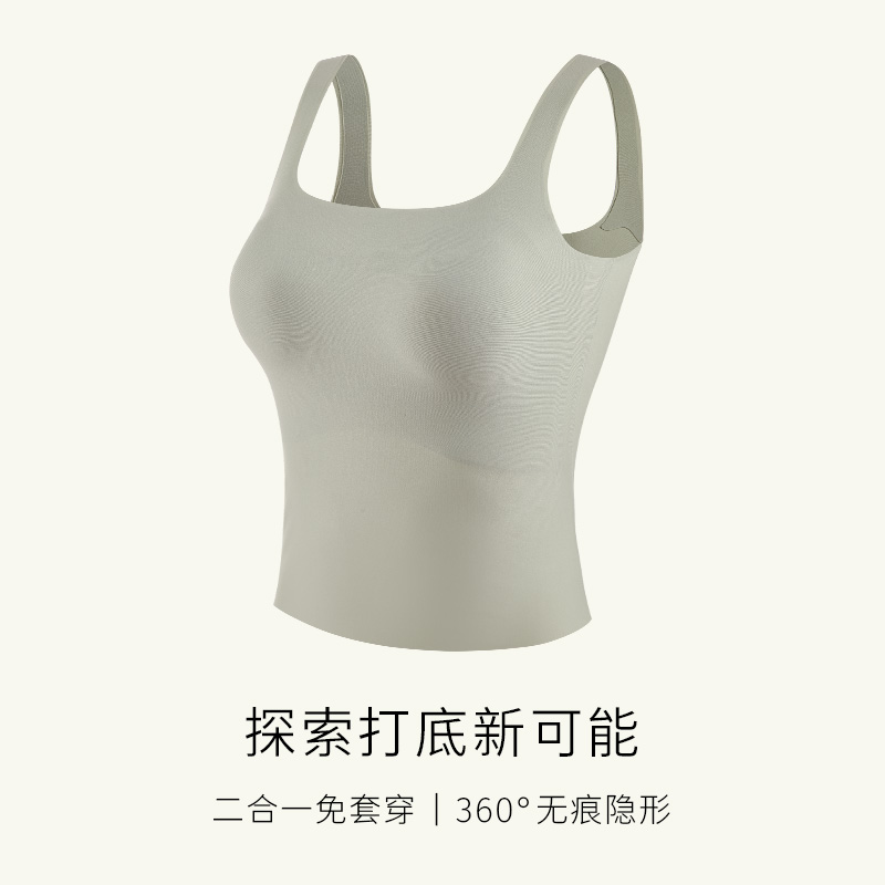 幸棉内衣美背一体式 女无痕紧身免穿文胸宽肩带背心带胸垫可外穿