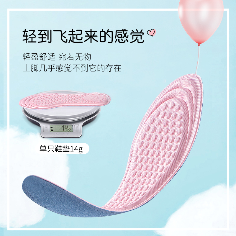 浪莎女生专用鞋 垫运动吸汗防臭软底舒适军训防痛久站不累踩屎感夏