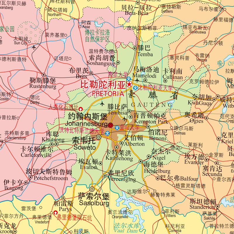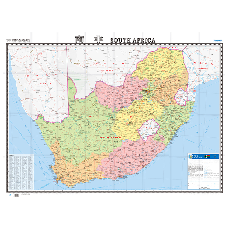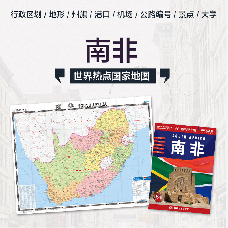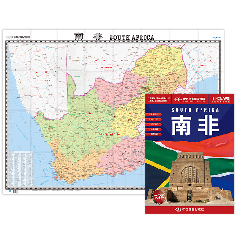 撕不烂防水耐磨 折挂两用 高清彩印 大字版 865×1170mm大全开 中英文对照 南非地图1.17mx0.86m世界热点国家