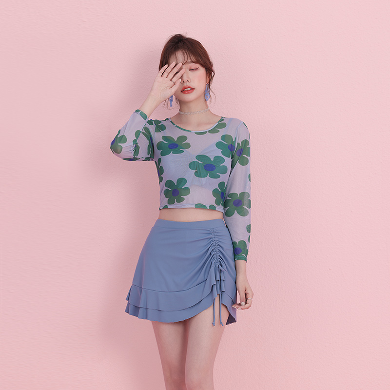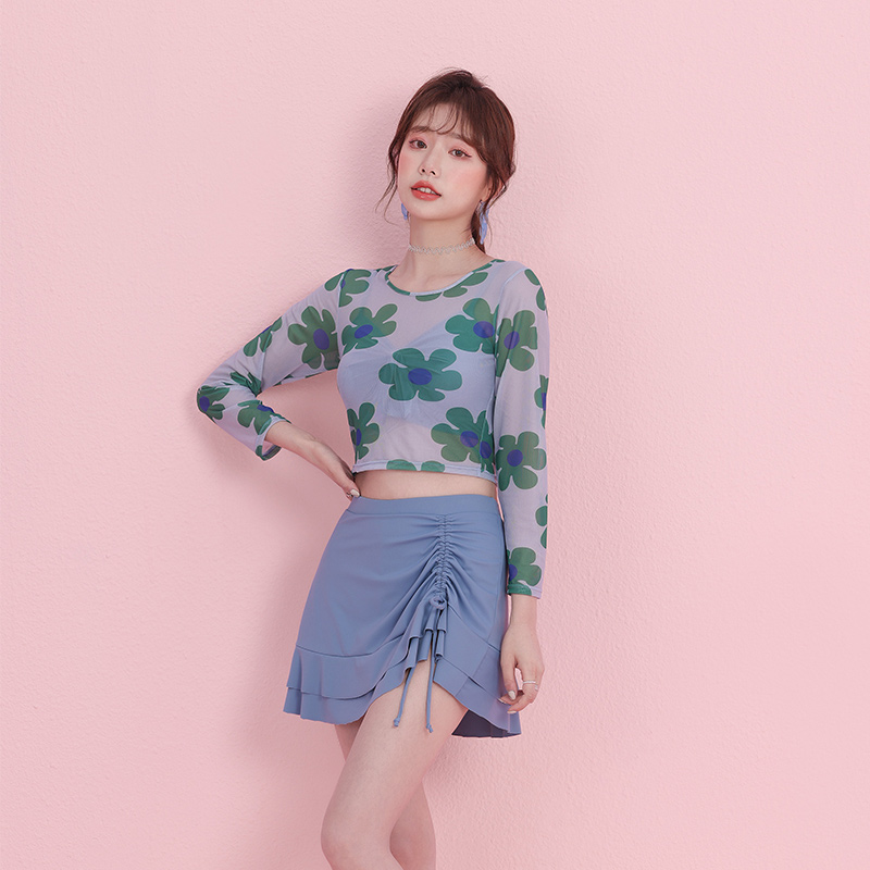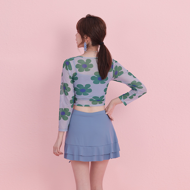 游泳装 泳衣女夏分体显瘦遮肚2024新款 长袖 度假保守三件套裙式 时尚