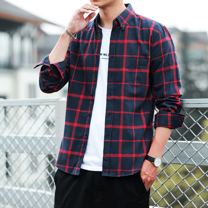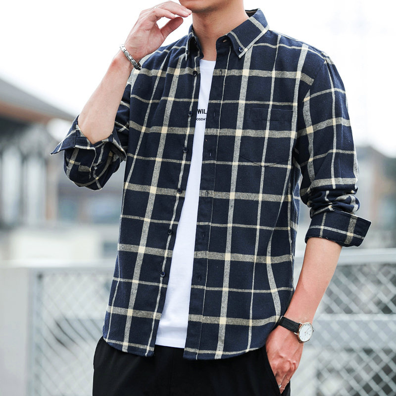 宽松2025春秋季 新款 薄款 长袖 衬衣青年潮流男装 男韩版 格子男士 衬衫