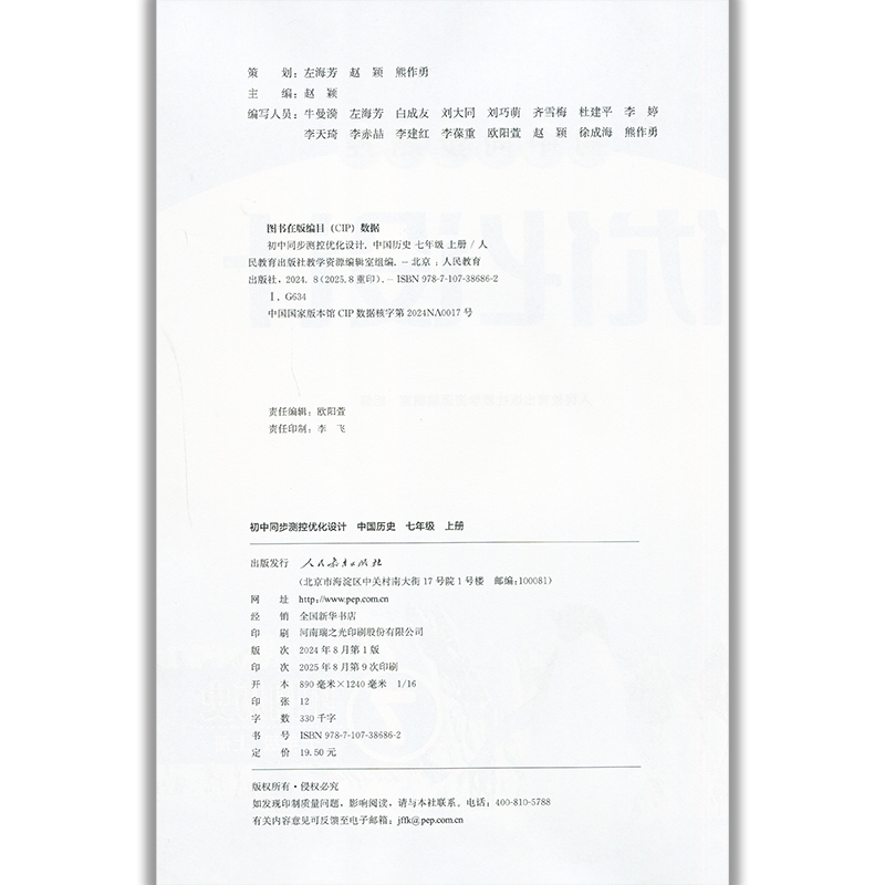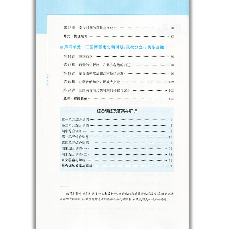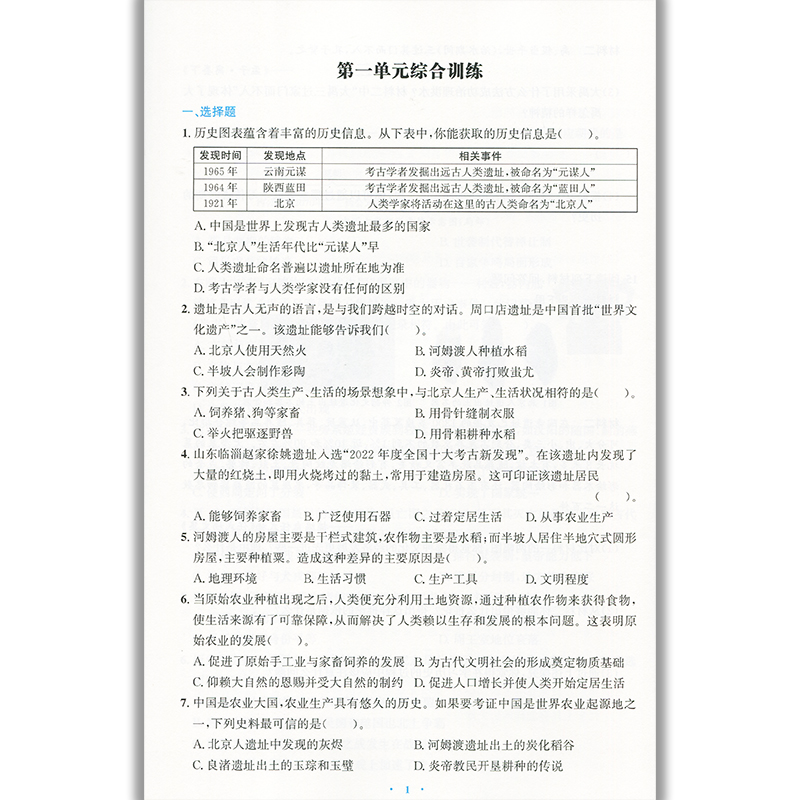 含试卷答案 练习题课堂练习 初中初一七年级上册历史同步测控教辅资料 初中同步测控优化设计中国历史7七年级上册人教版 2025人教版