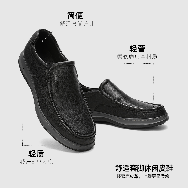 爸爸鞋 奥康男鞋 羊皮软面透气舒适一脚蹬工作皮鞋 商务休闲鞋 春秋款