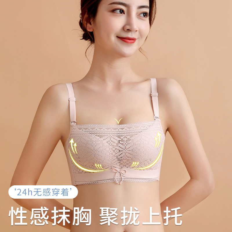 夏季 无钢圈防走光抹胸内衣女小胸聚拢上托调整型收副乳文胸罩 薄款