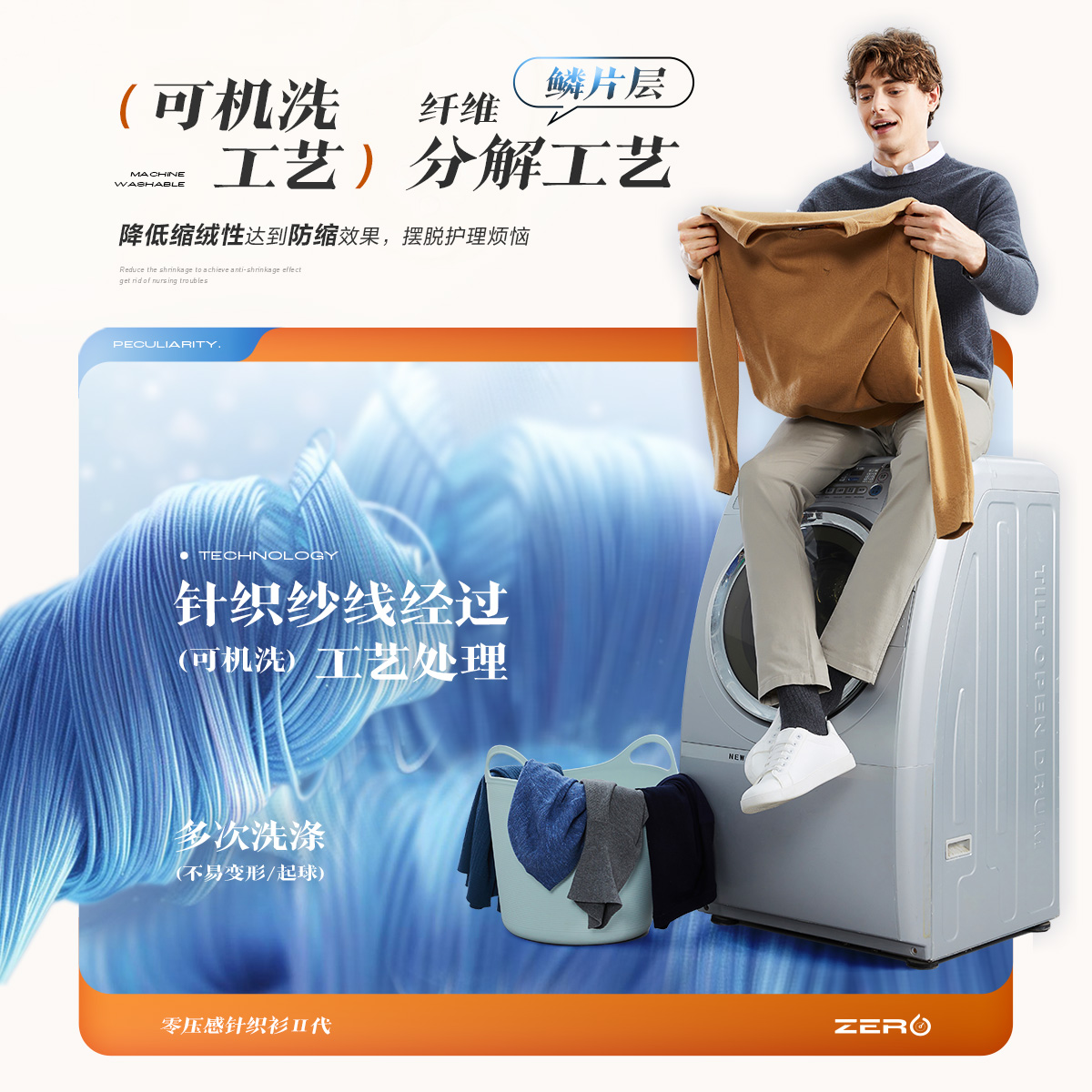 WANG克莱因蓝毛衣女秋季 百搭长袖 新款 双拉链针织衫 波浪袖 LEDIM