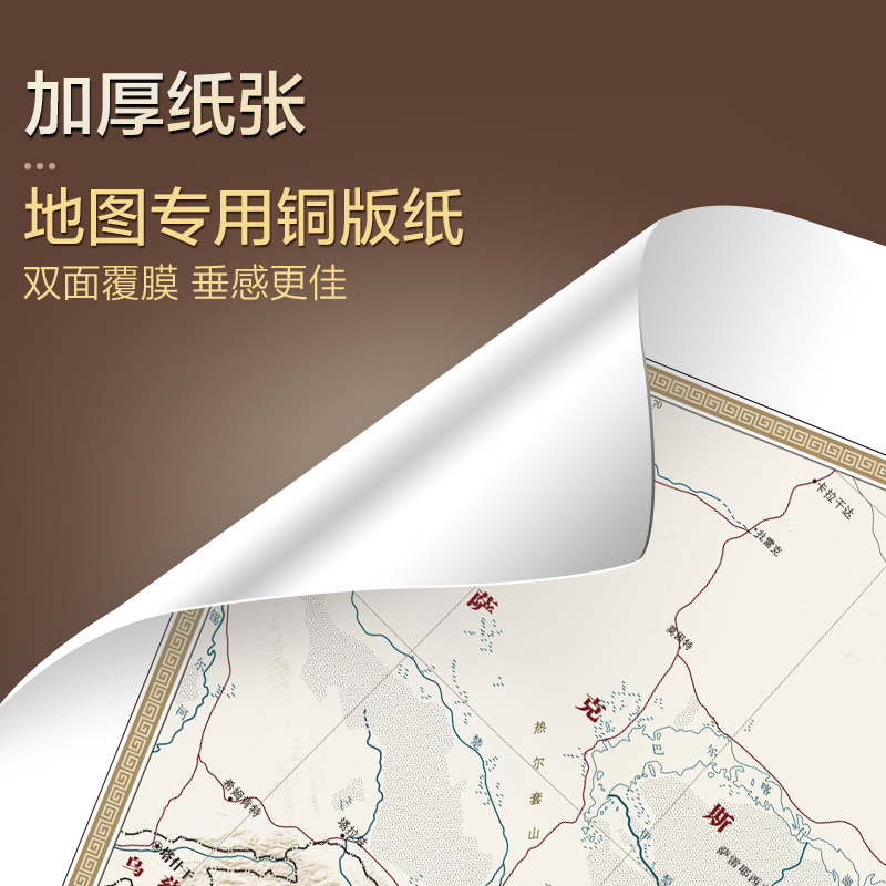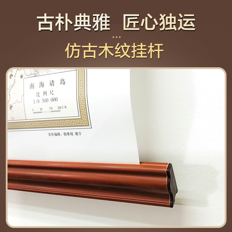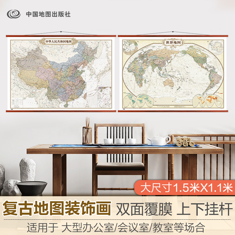 1.5米x1.1米 套装 组合 仿古地图:中国地图挂图新 仿红木色塑料挂杆 仿古挂图 复古地图 办公室用 世界地图新挂图