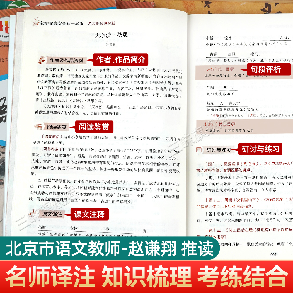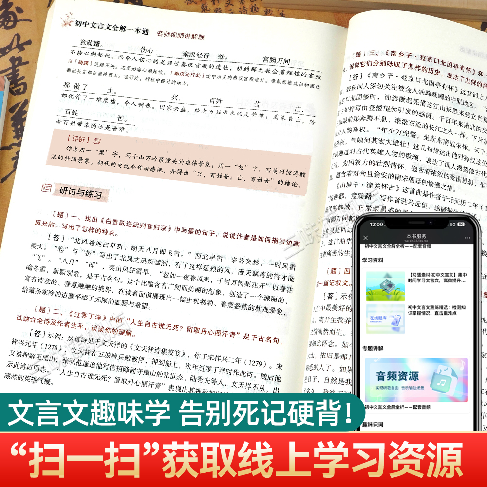2025年初中人教版 必背文言文全解一本通中华古诗文诵读与鉴赏七年级八九初中语文言文阅读训练和完全解读初中789古文译注及赏析
