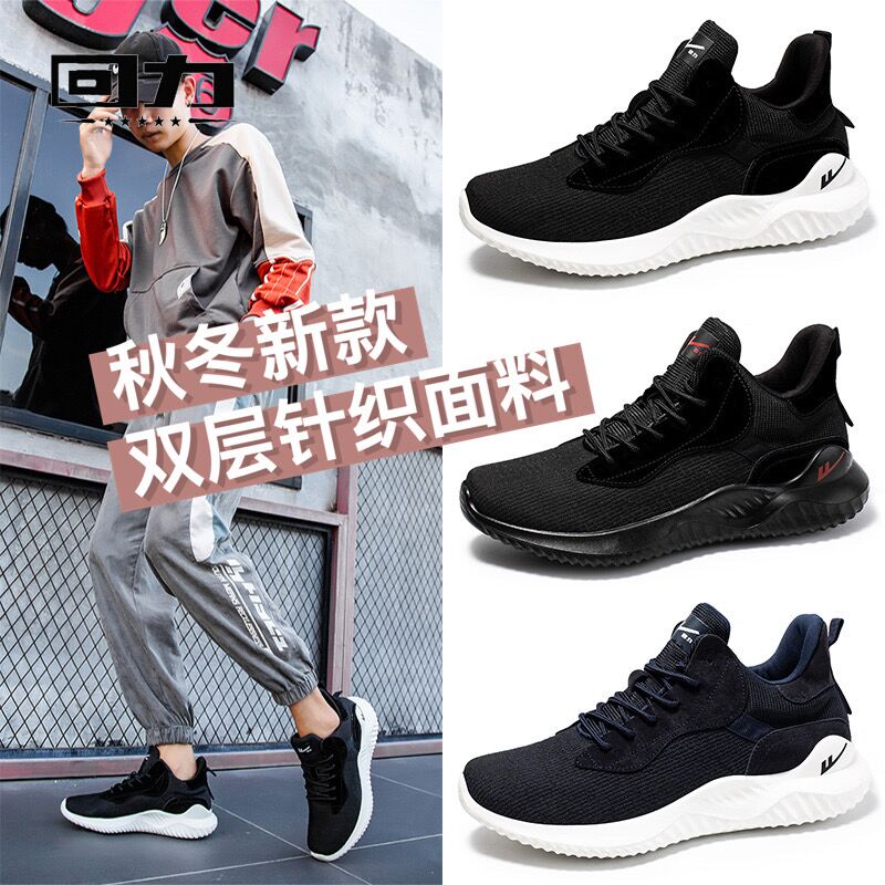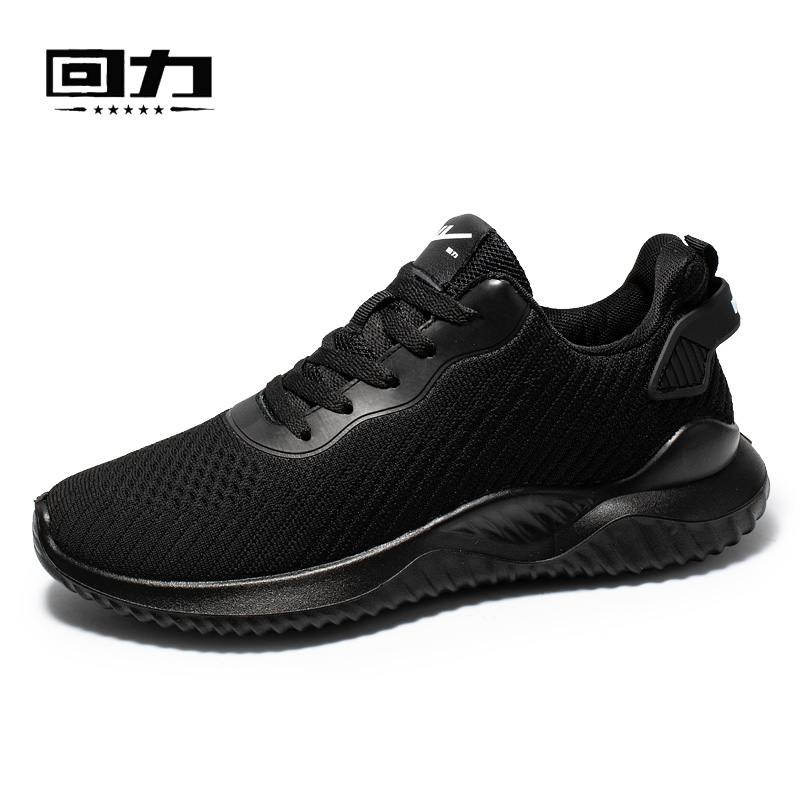 男鞋 黑色跑步鞋 秋季 网面透气防滑轻便休闲鞋 子 新款 华强回力运动鞋