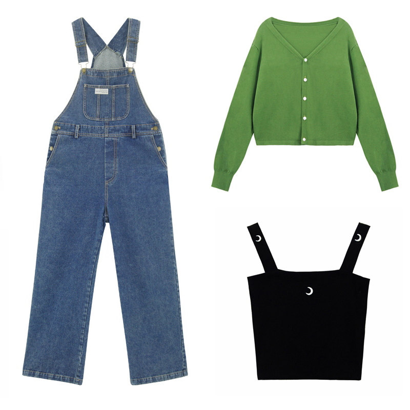 女装 针织开衫 时尚 三件套背带裤 外套小吊带宽松遮肚胖MM潮 秋季 大码