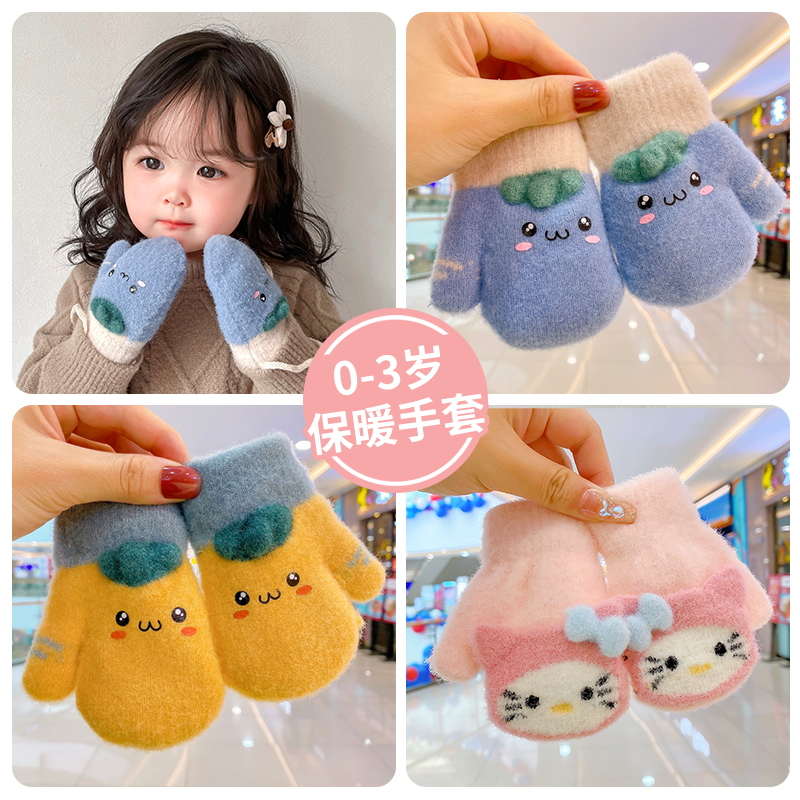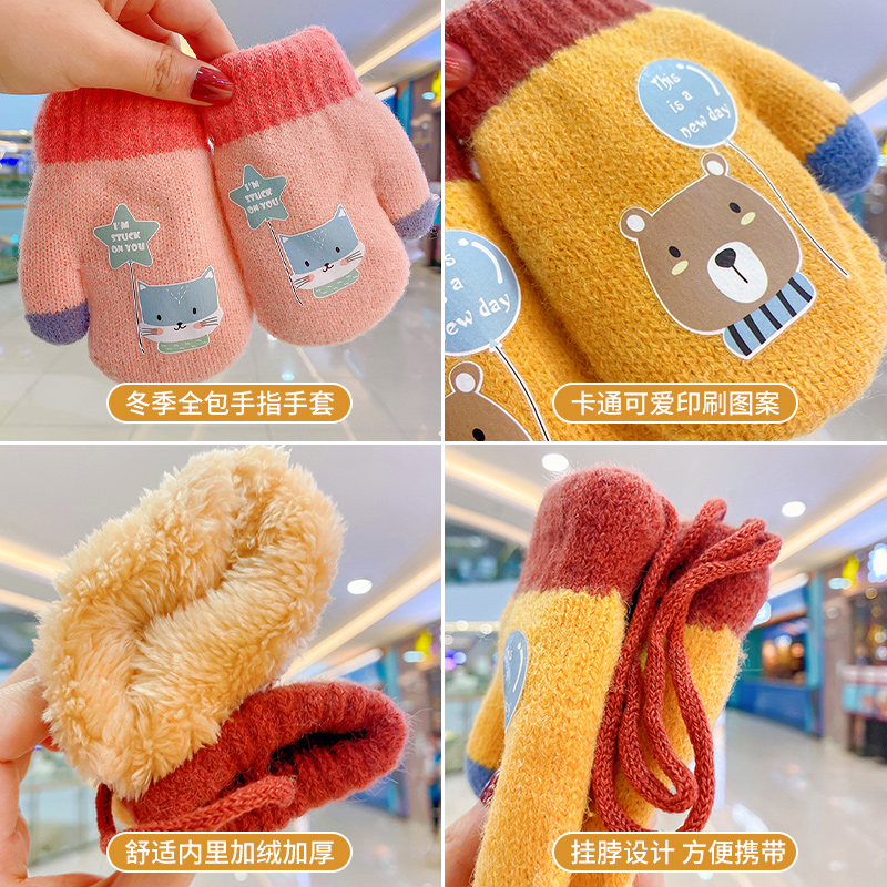 时尚 冬季 五指加厚保暖针织手套 随机1双
