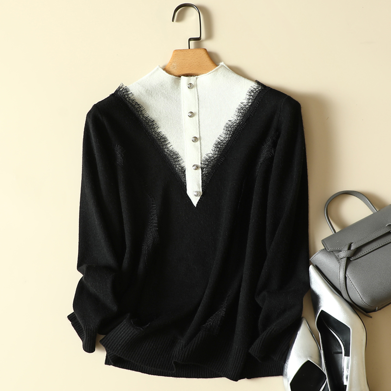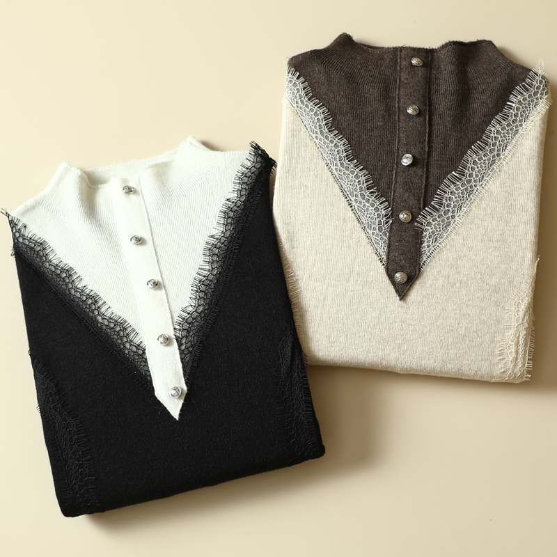柔软毛衫 春款 乐町甜美木耳边半高领打底衫 甜美打底衣修身 预