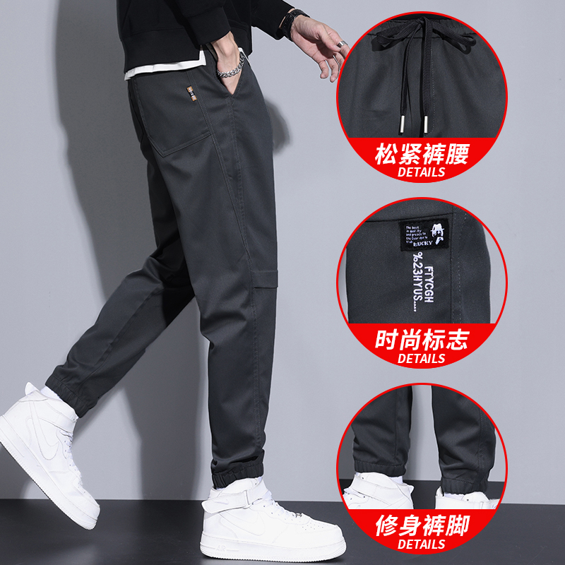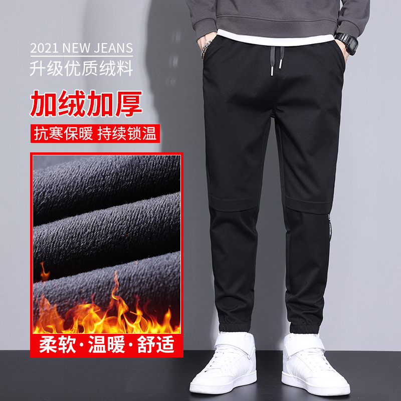 休闲裤 男生加厚保暖收口运动长裤 男士 裤 子 束脚加绒宽松工装 秋冬季