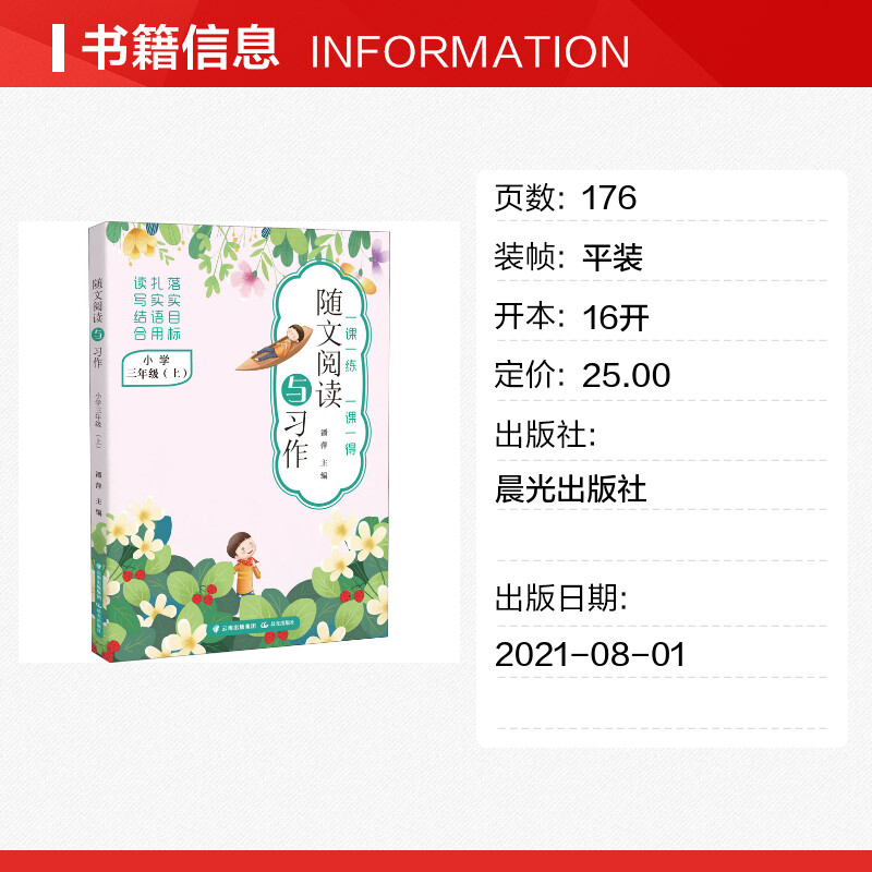 社会实用教材文教 社 3年级 晨光出版 图书籍 新华书店正版 编 潘萍 上 小学 随文阅读与习作