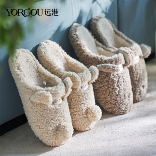 居家用室内防滑可爱保暖软底毛绒女冬款 男士 小熊棉拖鞋 远港秋冬季