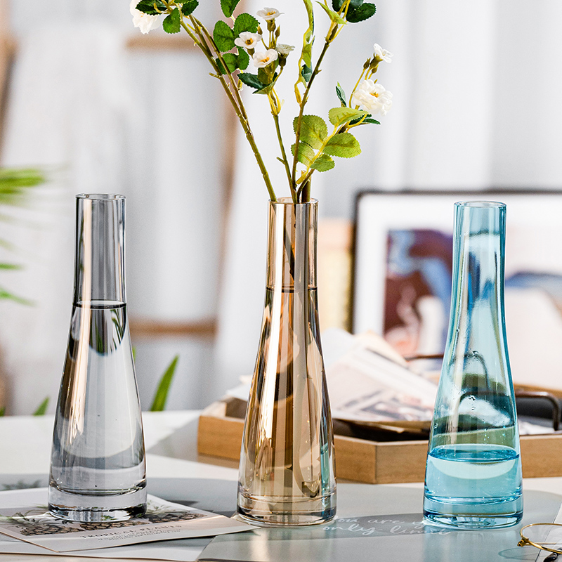北欧轻奢原色玻璃花瓶简约束口花器鲜花插花瓶客厅餐桌装 饰品摆件