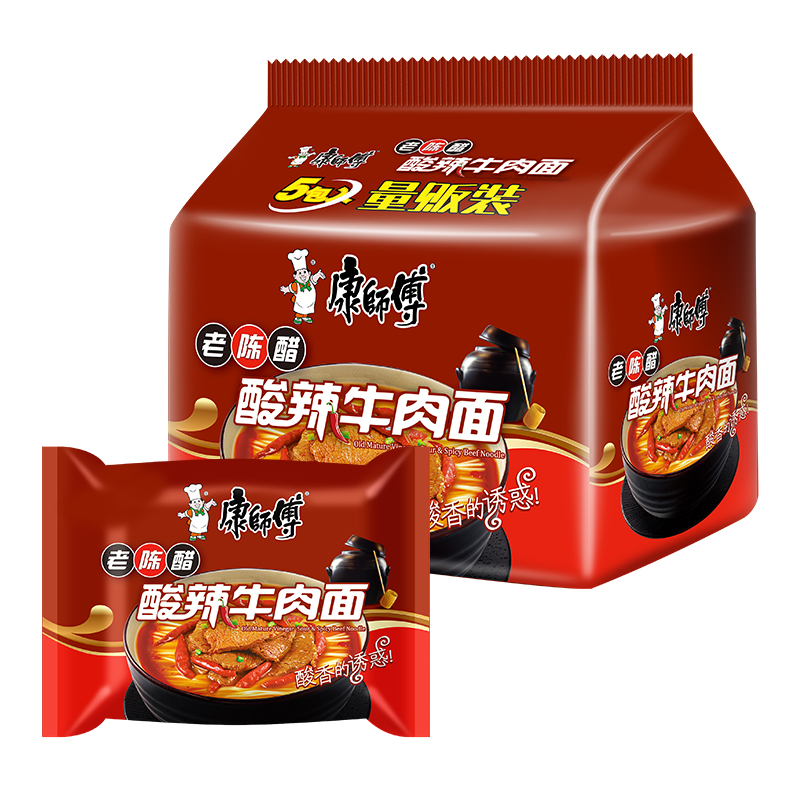 康师傅方便面经典 酸辣牛肉面五连包5袋泡面速食面夜宵旗舰店官网