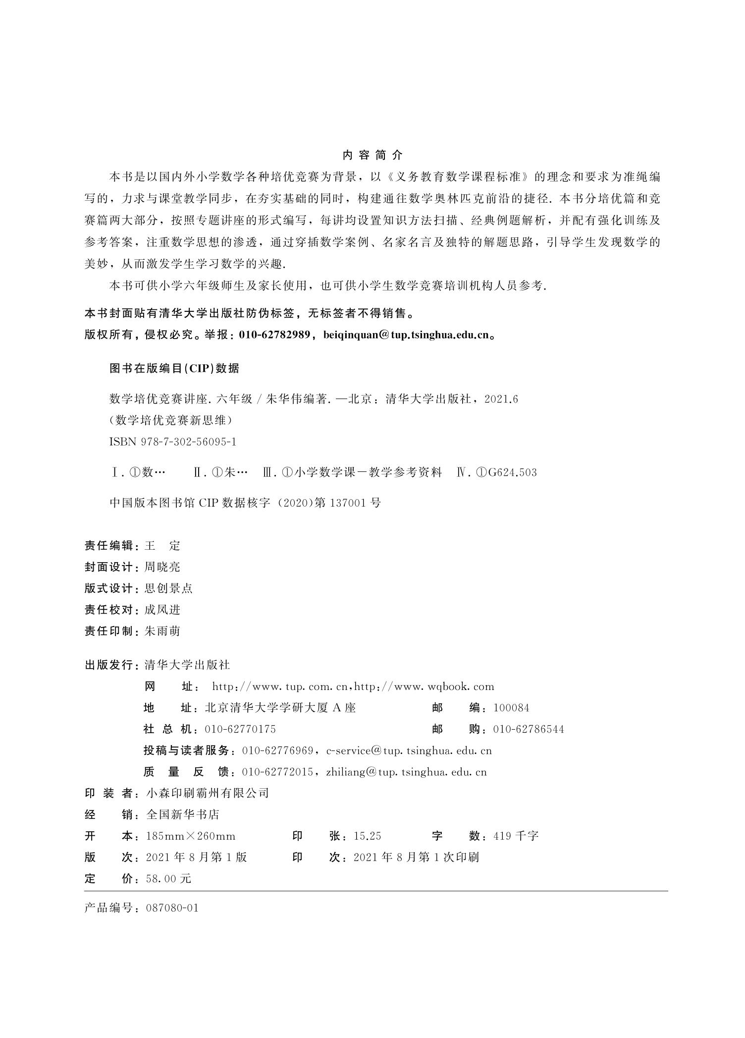 社数学培优竞赛新思维深圳中学校本教材奥数教程数学思维拓展课外读物 小学数学培优竞赛讲座6六年级朱华伟著清华大学出版 现货