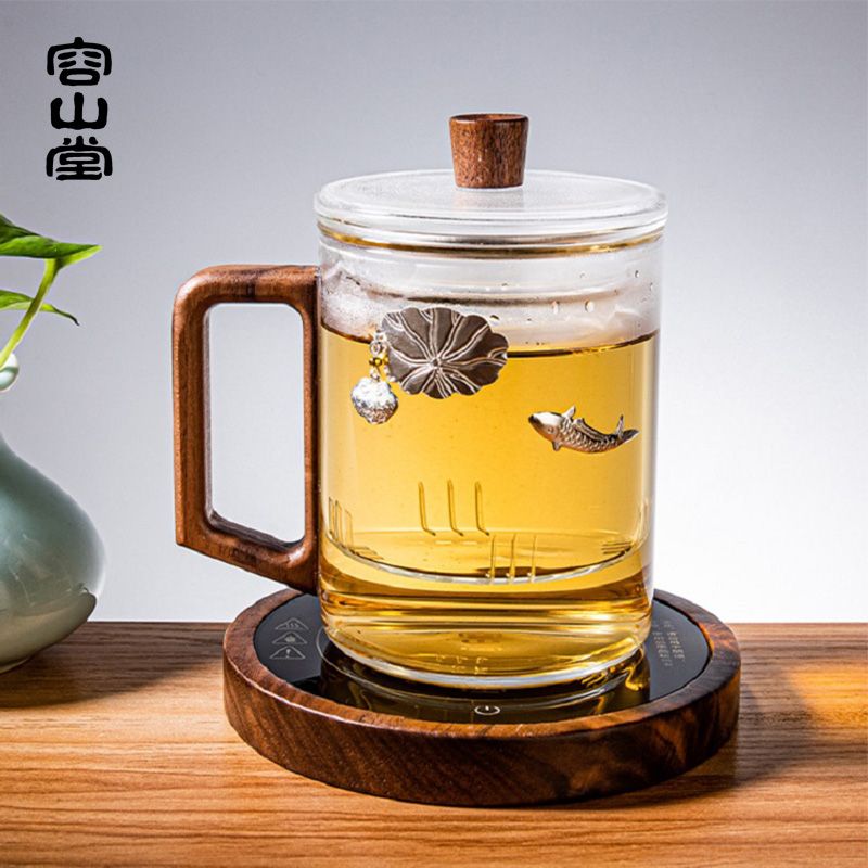 容山堂胡桃木保温底座实木茶杯垫玻璃杯水杯加热恒温杯垫壶承茶具